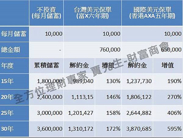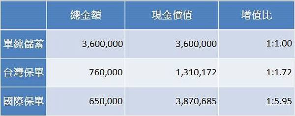 直接對比30年後的比較是不是讓你更清楚,國際保單>台灣保單>單純儲蓄;
