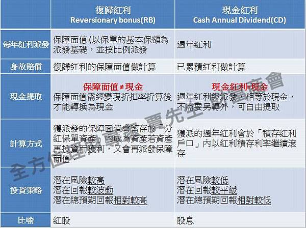 一般而言分紅保單分為兩種:(1)復歸紅利 (2)現金紅利;