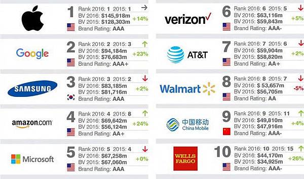 2016 年全球最具價值品牌排行榜