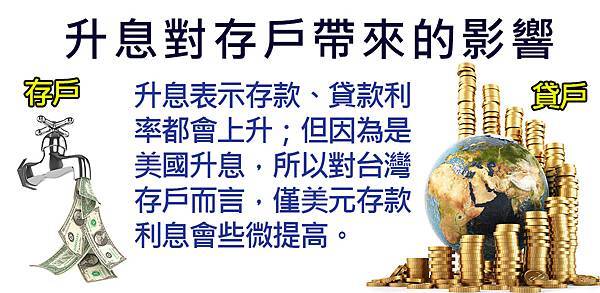 升息,是貨幣走強的訊號,也反映美國經濟復甦腳步穩健,全球資金都被吸引往美元資產挪移。換句話說,存款戶會把錢從其他利息較低的國家換成美元、移到美國當地的銀行,賺利差。也有人會在低利率國家貸款,將資金移入美國或美元計價商品,去做套利。美元需求增加,進而推高匯率,想換美元就要快點出手,找到適合您的投資理財的工具,大賺美元匯差財、時機財與時間財。