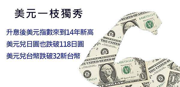 美元升息後,強勢美元形成,越來越多投資人選擇以美元為主要的配置貨幣,包含有美元定存、保單、股票基金、債券基金、房地產等等,美國目前以是世界經濟的領頭羊,帶領全世界走出金融海嘯,而在2016年更率先升息,更加能確定美國經濟正是復甦,而明年2017年也將預期還有三次的升息機會,投資人更需要注意美國經濟動向,才能確保投資走在正軌上。
