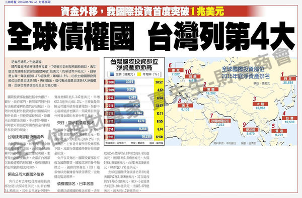 由於可見,對於中上階級的富人而言,對於資金的海外移轉性自然來的比一般普羅大眾高,且國內的投資環境不佳,難以吸引國人投資,因此台灣錢拼命往外流!