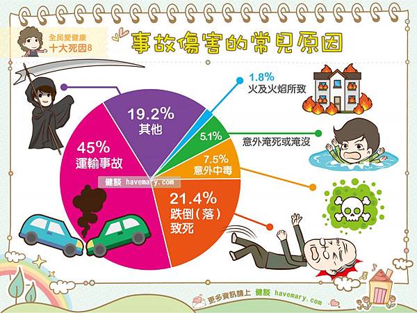 105年共計有7,206人因意外事故而亡,其中,男性發生意外事故的比例遠高於女性,約有3倍之多,105年數據統計,事故傷害致死人數佔總死亡人數比例為4.18%,但意外險的身故給付只能保障意外事故致死的範圍,壽險才是保障身故的主要工具。