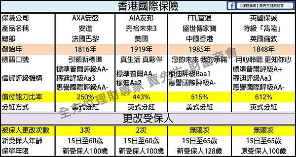 <<香港四大保險公司-變更受保人超強重點彙整>>